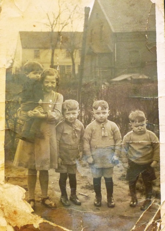 Auf dem Foto sind die Kinder von Anna Stalberg zusammen mit Ihrer Tante, Ilse Stalberg zu sehen. Anna Stalberg, Tochter von Heinrich Stalberg und Maria Johanna Wiemers heiratet 1932 Wilhelm Gesper (*1910 Oberhausen, +1938 Duisburg), Sohn von Kaspar Gesper und Elisabeth Meurer. Aus der Ehe mit Wilhelm Gesper und Anna Stallberg entstammen 6 Kinder. Die vier auf dem Bild (ca. 1939/1940 aufgenommen) sind Karl-Heinz, Hans, Helmut und Kurt.